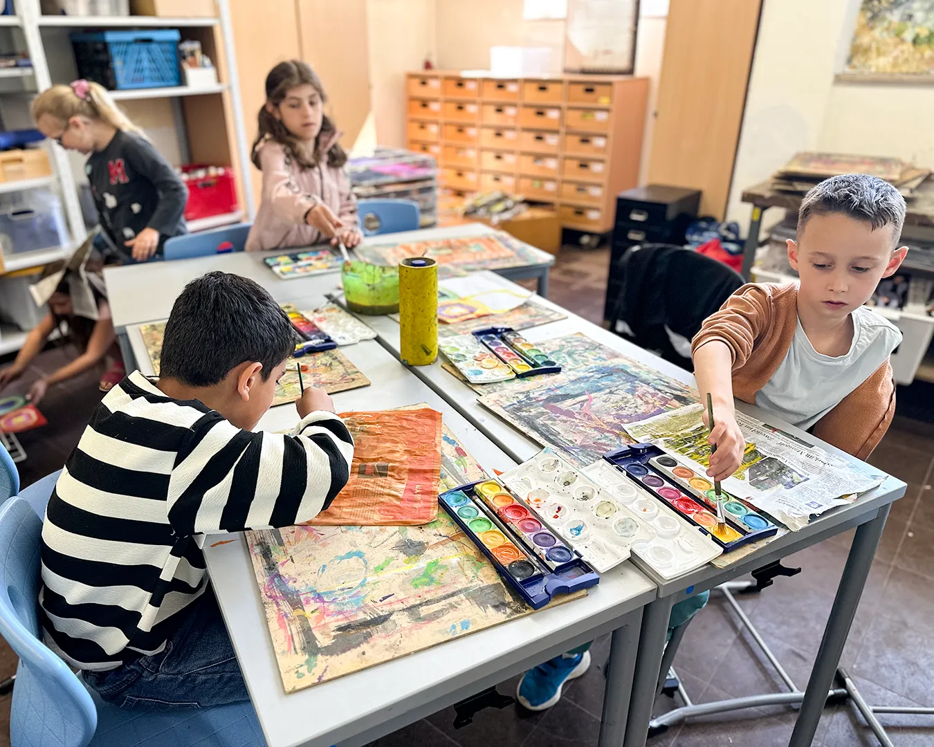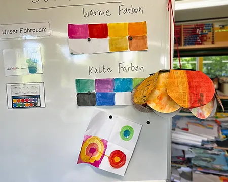 Doch bevor Farbe ins Spiel kam, beschäftigten wir uns erst mit dem Thema Farbzuordnung: warme Farben wie Rot und Orange, kalte Farben wie Blau und dunkles Grün. Die Kinder sollten den Unterschied bewusst wahrnehmen und üben.