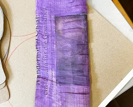 Dann durften alle eine Zeitung mit Wasserfarben bunt gestalten. Aus dieser bemalten Seite schnitten wir mit einer Schablone Blütenblätter aus. In der Blütenmitte kamen bemalte Klopapierrollen als Stempel zum Einsatz – das brachte den besonderen Pfiff.