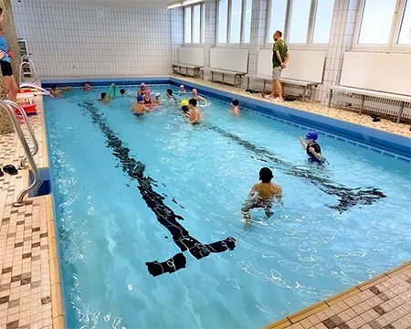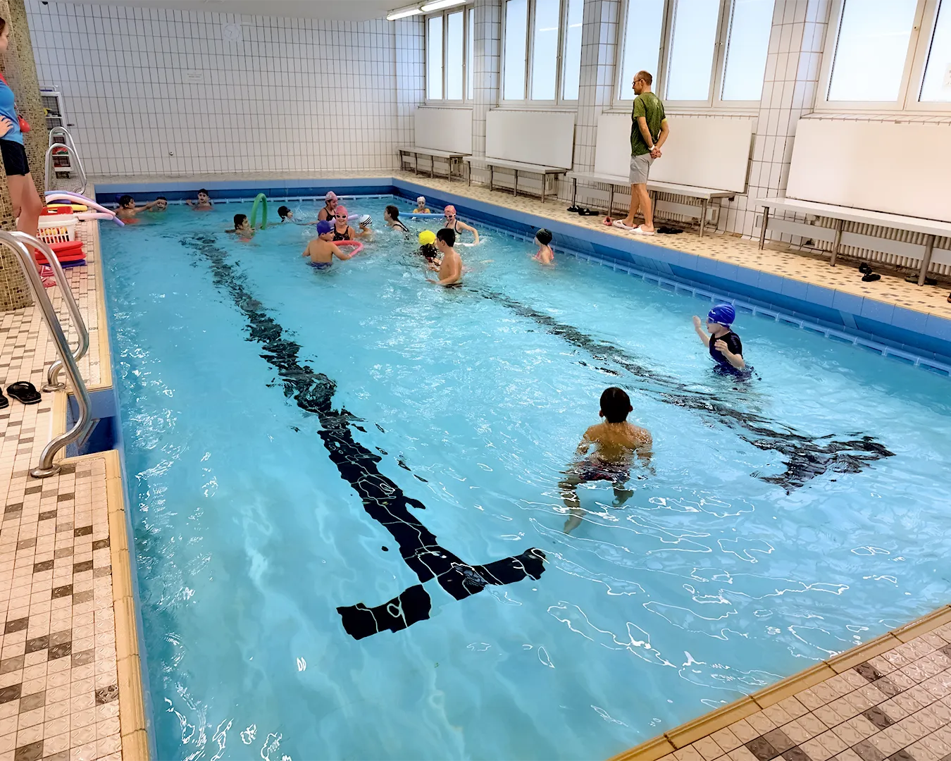 Hierbei wird nicht, wie sonst üblich, in einem Halbjahr jede Woche einmal geschwommen, sondern die 3. Klasse bekommt drei Mal in einem Halbjahr eine Woche lang jeden Tag Gelegenheit zum Schwimmen!