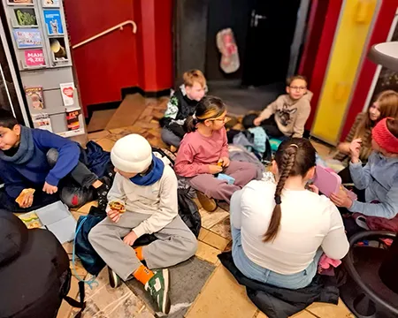 Im gemütlichen Kinosaal wurden wir freundlich empfangen. Im Vorraum blieb sogar noch Zeit für ein kleines Frühstück, bevor es gemeinsam mit zwei Klassen einer Sprockhöveler Grundschule in die Wüste ging. Gezeigt wurde der Film „Tafiti – Ab durch die Wüste“, basierend auf der beliebten Kinderbuchreihe von Julia Boehme. Erzählt wird die Geschichte des vorsichtigen Erdmännchens Tafiti, das sich zusammen mit dem Pinselohrschwein Pinsel auf ein Abenteuer wagt – eine Reise, die Mut, Freundschaft und Durchhaltevermögen auf die Probe stellt.