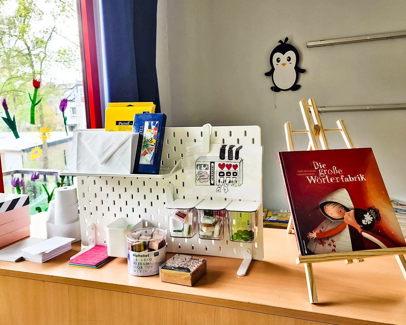 Mit viel Freude wurden Wörter gedruckt, geschrieben und gestaltet. Gemeinsam entstanden eigene kleine und farbenfrohe Wörterfabriken, in denen die Kinder ihre ganz persönlichen Lieblingswörter sammelten. Dabei wurde schnell deutlich, wie unterschiedlich und wertvoll Wörter für jedes einzelne Kind sein können.