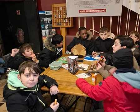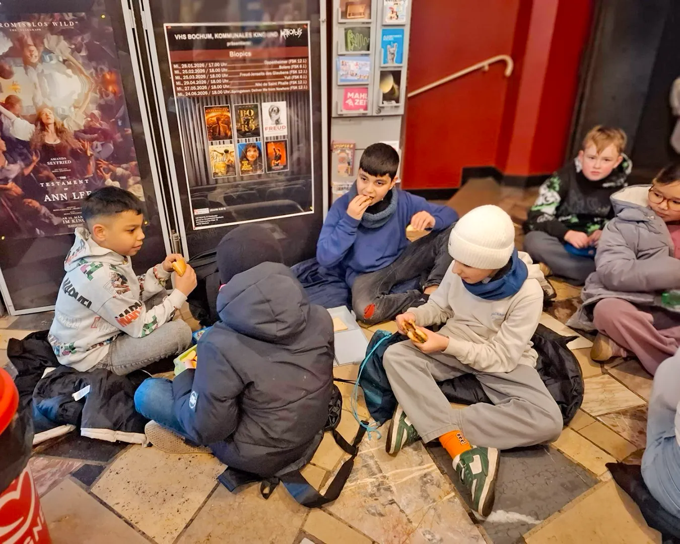 Im gemütlichen Kinosaal wurden wir freundlich empfangen. Im Vorraum blieb sogar noch Zeit für ein kleines Frühstück, bevor es gemeinsam mit zwei Klassen einer Sprockhöveler Grundschule in die Wüste ging. Gezeigt wurde der Film „Tafiti – Ab durch die Wüste“, basierend auf der beliebten Kinderbuchreihe von Julia Boehme. Erzählt wird die Geschichte des vorsichtigen Erdmännchens Tafiti, das sich zusammen mit dem Pinselohrschwein Pinsel auf ein Abenteuer wagt – eine Reise, die Mut, Freundschaft und Durchhaltevermögen auf die Probe stellt.